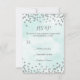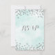 Wedding RSVP cards in light turquoise blue watercolor pattern with glamourous silver confetti. Please note silver is photographic effect only.