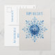 Blue watercolor snowflake, Christmas Holiday Postcard