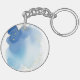 Blue Watercolor Splash with Gold Glitter Dots Key Ring