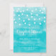 Elegant and whimsical couples shower invitation featuring white hanging fairy lights and watercolor blue background. This invitation is perfect for nautical-themed and summer couples showers.