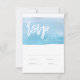 This reply card is part of a matching wedding invitation set. It features a calming blue watercolor texture. Can be personalised with text colour and wording.