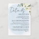 Share important information with your guests using this Blue Watercolor and White Rose Wedding Details Card. Featuring a soft blue watercolor wash and delicate white floral accents, this insert is perfect for listing accommodations, dress code, directions, or your wedding website. Fully customisable to match the tone and elegance of your overall wedding suite.
