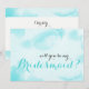 For the bride to be who is whimsical! A creative and fun way to ask your very special girls to be a part of your bride tribe (and stand by your side on your big day!) Featuring watercolor wash background in blue. Reads "Will you be my Bridesmaid?" on the front with "It would mean so much if you said Yes!" on the back. Customise each name and wedding date to make your request one of a kind.