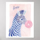 Blue Watercolor Zebra Animal Blowing Gum Bubble Poster