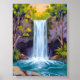 Blue Waterfall | Forest Landscape Nature Painting Poster