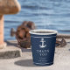 The pieces of this elegant wedding suite feature classic nautical styling with a clean, minimalist look. Stylistic waves in shades from aqua to navy blue and an anchor and rope illustration provide unique accents. On this coordinating paper cup, the small anchor in white on a navy blue background is simple but eye-catching. Add your 'Thank You' message, names and wedding date using the provided template. Perfect for yacht club, boat, beachside or summer destination weddings. Search ID836 to see this complete suite and others with alternate marine element accents.