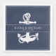 The pieces of this elegant wedding suite feature classic nautical styling with a clean, minimalist look. Stylistic waves in shades from aqua to navy blue and an anchor and rope illustration provide unique accents. A navy blue background with fine white piping and large anchor image give this wedding paper napkin a striking modern look. Perfect for yacht club, boat, beachside or summer destination weddings. Search ID836 to see this complete suite and others with alternate marine element accents.