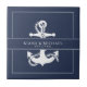 Classic nautical styling with a clean, minimalist look and stylistic waves in shades from aqua to navy blue. An anchor and rope illustration provide unique accents. A navy blue background with fine white piping and large anchor image give this wedding ceramic tile a striking modern look. Perfect for yacht club, boat, beach house or newlywed's ensuite. Search ID836 to see this complete suite and others with alternate marine element accents.
