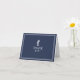This elegant wedding suite features classic nautical styling with a clean, minimalist look. Stylistic waves in shades from aqua to navy blue and a seahorse illustration provide unique accents. A navy blue background with fine white piping and white interior gives this wedding 'Thank You' card a striking modern look. Perfect for yacht club, boat, beachside or summer destination weddings. Search ID836 to see this complete suite and others with alternate marine element accents.