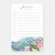 Add whimsical marine theme to liven up your everyday with our colourful Blue Waves & Happy Turtle Customisable Post-It Notes featuring playful green turtle frolicking in a serene sea among ocean flora. The design is captured in shades of blue, teal, yellow, gold, pink and purple. All text can be updated to create personalised stationary.