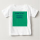 This baby t-shirt has an art deco design of blue curved lines in a triangle shape on a field of green repeated across the design. Want a different colour? Message me.