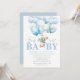 lovely teddy bear, we can bearly wait baby shower invitation with a blue baby boy theme. The text and colours can be personalised.