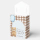 Perfect for filling with candies, small keepsakes, or thoughtful treats, this gift bag favour box adds both style and function to your baby shower tablescape. Its mix of rustic plaid, soft blue tones, and whimsical teddy bear artwork creates a warm, inviting look your guests will adore.