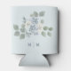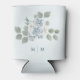Blue Wedding Can Cooler. Step into a garden of botanical beauty and discover a stunning wedding can cooler design featuring beautiful hand-painted watercolor florals arranged in a lovely vintage bouquet. The delicate dusty blue, cream, and white roses and sage green eucalyptus greenery create a rustic elegance, perfect for your special event! The blue-grey font and subtle touches of blue perfectly complement the timeless design. Let this exquisite invitation express your rustic romantic elegance and timeless style.