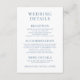 Immerse yourself in modern sophistication with this details card designed for romantic spring/summer weddings. The card features a delicate pattern of vibrant blue watercolor flower blooms, allowing you to personalise your experience by adding the names of the bride and groom on the back for a truly unique touch.