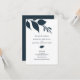 Save on paper and money with this monogram budget wedding invitation with QR code. A simple yet classy design, this wedding invite features a classic sans font in deep midnight blue over a crisp white background. A top boarder of leaves frames your wedding details. The card reverses to a solid blue colour with your wedding QR code and space for additional details. All the colours are customisable. For more budget wedding invites visit www.zazzle.com/dotellabelle