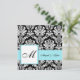 Blue Wedding Monogram Damask Invitation