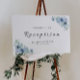 This Blue Wedding Reception Welcome Sign template is an editable, easy-to-personalise, minimalist wedding monogram design.