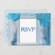 Blue Wedding RSVP displays a shabby chic country inspired design. The word "RSVP" is written within the middle of a wooden picture frame. The back features a light blue background with wedding information written in a corresponding blue font. Place your order today!