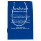 This blue and white gift bag, filled with thank you gifts and placed in your guest's accommodation, is a nice way to thank your out of town family and friends for the travel they needed to do to get to your graduation.