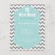 These postcards are perfect to send to your friends to let them know you have moved to a new address. They feature a trendy grey and white chevron pattern background. On top of the background is a blue area with text you can customised. A key sites above the text in a light blue circle.