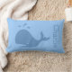 Blue whale lumbar pillow with custom baby name. Cute baby shower or 1st Birthday gift idea for boy's baby room or nursery. Animal cartoon fish design for newborn child and new parents. Personalised presents for newborn child.