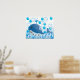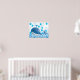 Sweet and happy blue whale surrounded by soap bubbles to brighten up the nursery or perhaps where baby gets a bath.