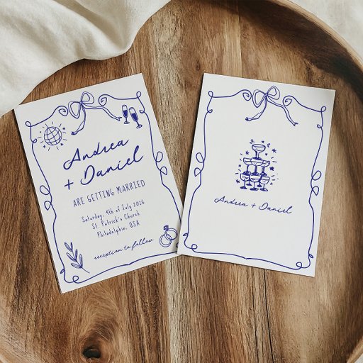 Blue Whimsical Fun Quirky Hand drawn Wedding Save The Date