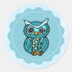 Blue Whimsical Owl  birthday or baby shower stickers. Cute to seal invitations or candy favour bags.