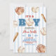 Blue Whimsical Stripe Boy Baseball Baby Shower Invitation