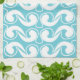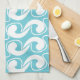 Blue White Abstract Curve Deco Art kitchen towel.