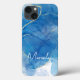 Blue & White Agate Marble Abstract Name Monogram Case-Mate iPhone Case