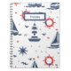 Blue, white and red nautical design notebook