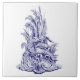Blue & White Baroque Rococo Rocaille Fish Fountain Ceramic Tile