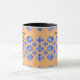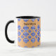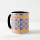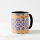 Diamond Chequered Geometric design in blue and white. Beige background. Two places for customising this Mug that will be perfect for a gift. Part of the Plethora of Patterns Collection.