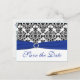 Blue, White, Black Damask Save the Date Card