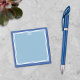 Monogrammed sticky notes in a preppy design with blue and white borders, a sky blue background, and your initials in white.