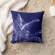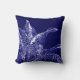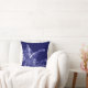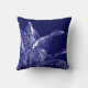 Modern throw pillow features a stylised botanical line drawing of a mini coconut palm; designed in a trendy complimentary colour palette of blue with shades of navy and sapphire blue with complimentary white accents