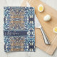 Blue white brown loft industrial style kitchen towel, designed by PiccoGrande, featuring custom text on dark blue stripe.