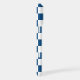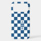 Cool iPhone case features a bold blue and white checkered pattern with a customizable monogram. Add (or delete) 3 initials or numbers in the sidebar to personalize it. The geometric checkerboard pattern is made of rows of alternating white and blue squares. Other case styles and models also available in the sidebar.