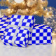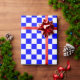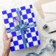 Blue, white chequerboard squares wrapping paper