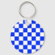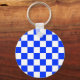 Blue White Chequered Check Pattern Key Ring