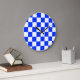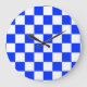 Blue White Chequered Check Pattern Large Clock