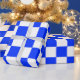 Blue and White Check Chequered Geometric Squares Pattern Design