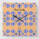 Blue White Chequered Light Beige Square Wall Clock