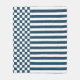 Blue & White Chequered & Stripes Repeat Pattern Fleece Blanket