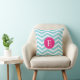 Customise this vibrant blue and white chevron pattern with bright pink monogram design with your initial.