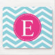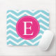 Blue White Chevron Bright Pink Monogram Mouse Pad
