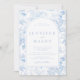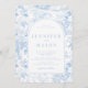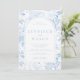 Elegant delicate Chinoiserie pattern with light blue white flowers spring summer classical wedding invitation with bride and grooms monogram on the back.