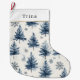 Blue White Christmas Trees Snowflakes Large Christmas Stocking